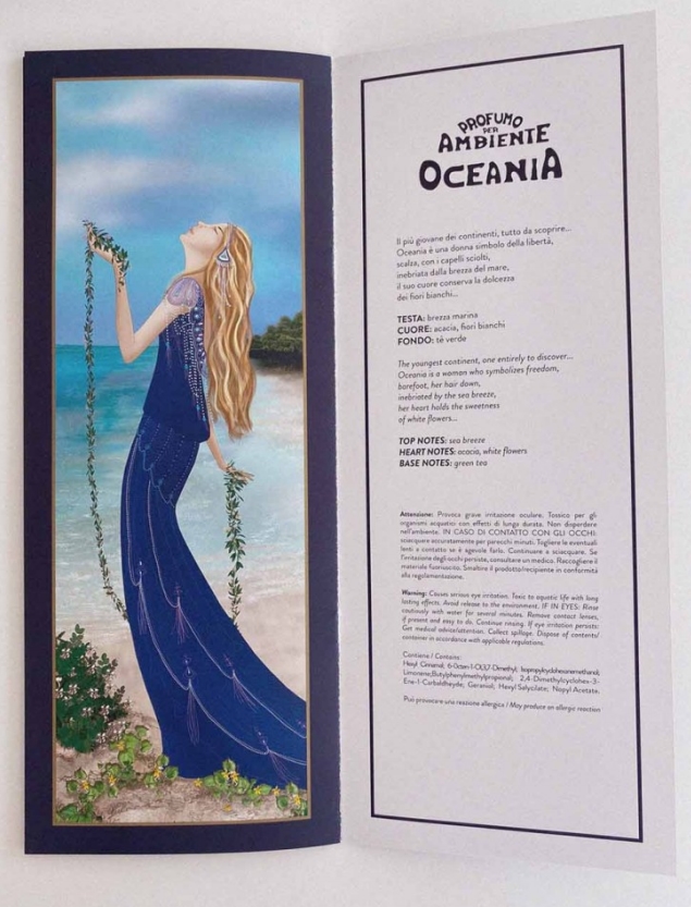 우아한 여성이 의상과 자연을 통해서 대륙의 이미지를 나타내고 있어요.